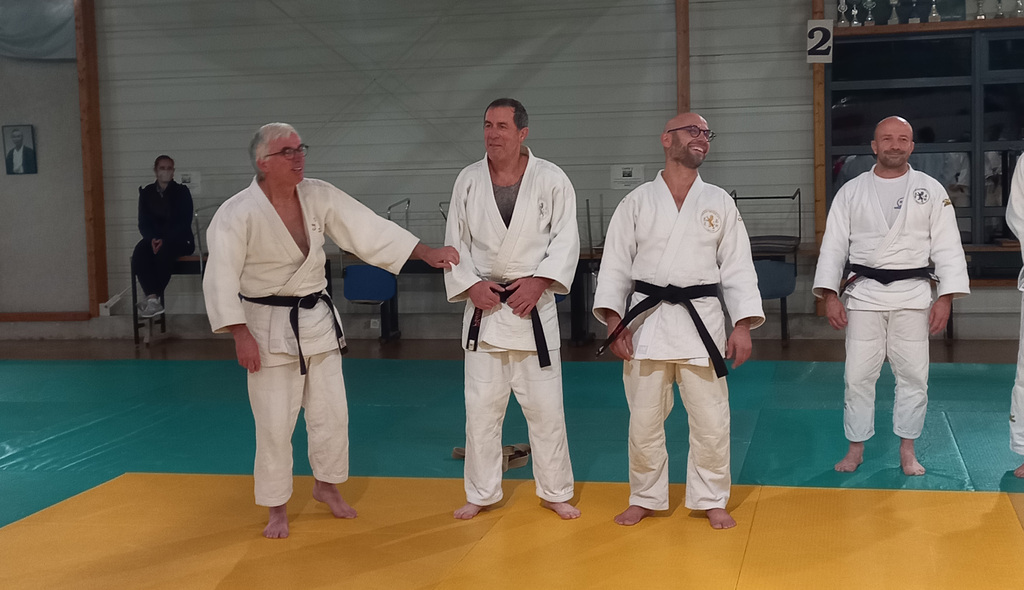 Vendredi soir, Georges Thébault a remis deux ceintures noires à des jujitsukas : Jany Chandon et Philippe Legall.
