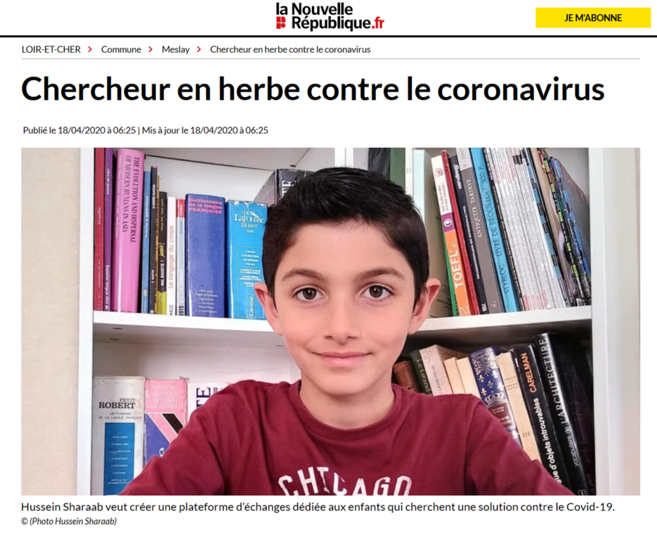 Il s'agit de Hussein Sharaab, 9 ans, passionné de médecine, qui souhaite mettre en place une plateforme d'échanges avec d'autres enfants pour échanger des idées afin de trouver comment venir à bout du Covid19.