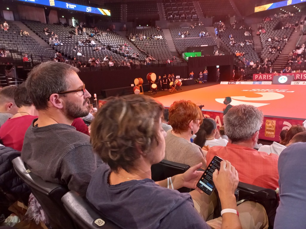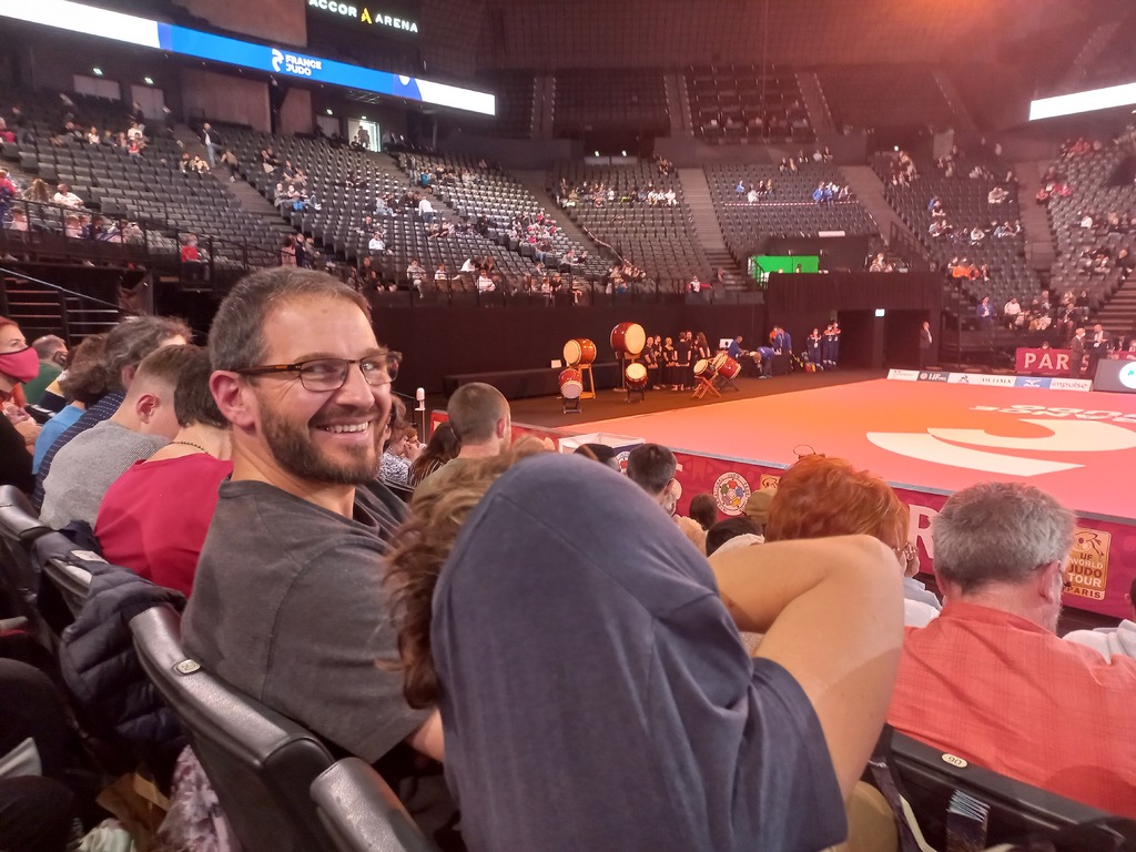 Arrivée à 8H30 devant les portes de Bercy, retrouvailles avec Guillaume et Gabriel Boisvert, revenus de Bordeaux pour l'occasion, et installation dans les gradins de Bercy à 9H30 après une pause café bien nécessaire !